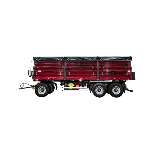 Yan kapaklar sağlam kilitleme noktalarıyla donatılmıştır ve yük taşıma sırasında tam güvenlik sağlar. Üç akslı tasarım, yükün eşit dağıtılmasını mümkün kılarak titreşimleri azaltır ve zorlu arazi koşullarında bile yüksek stabilite sunar. Güçlü boya kaplaması, römorku dış etkenlere, korozyona ve ağır çalışma koşullarına karşı uzun süre korur.